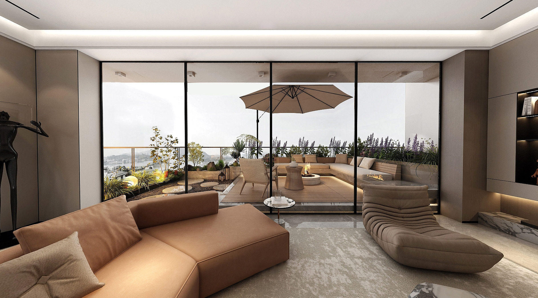 山外习园 30㎡空中庭院种四季诗意,6.3 米挑高让星空与城市灯火成为触手可及的生活日常