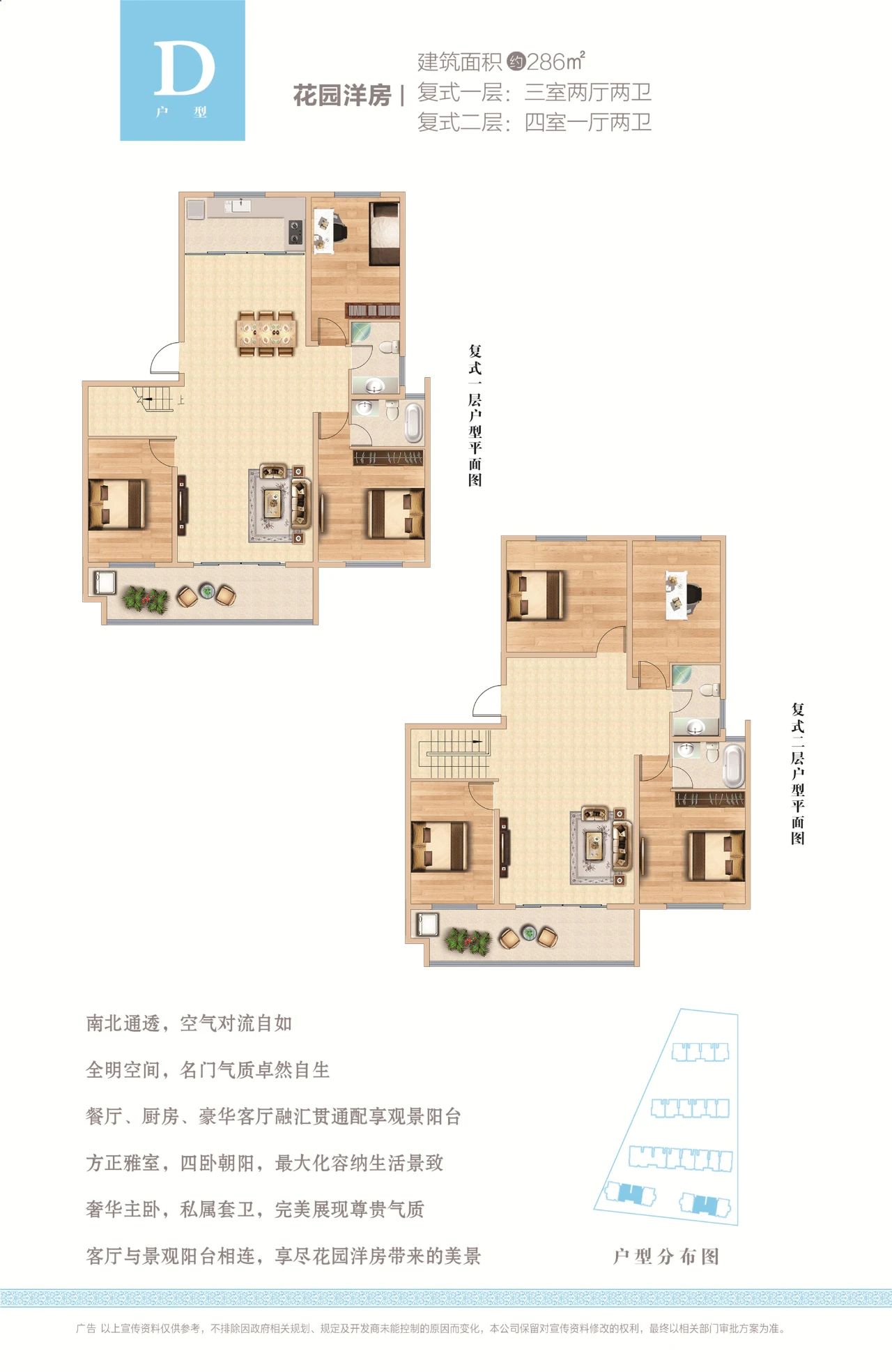 D户型:约285㎡ 阔绰复式,功能分区清晰,适合多代同堂