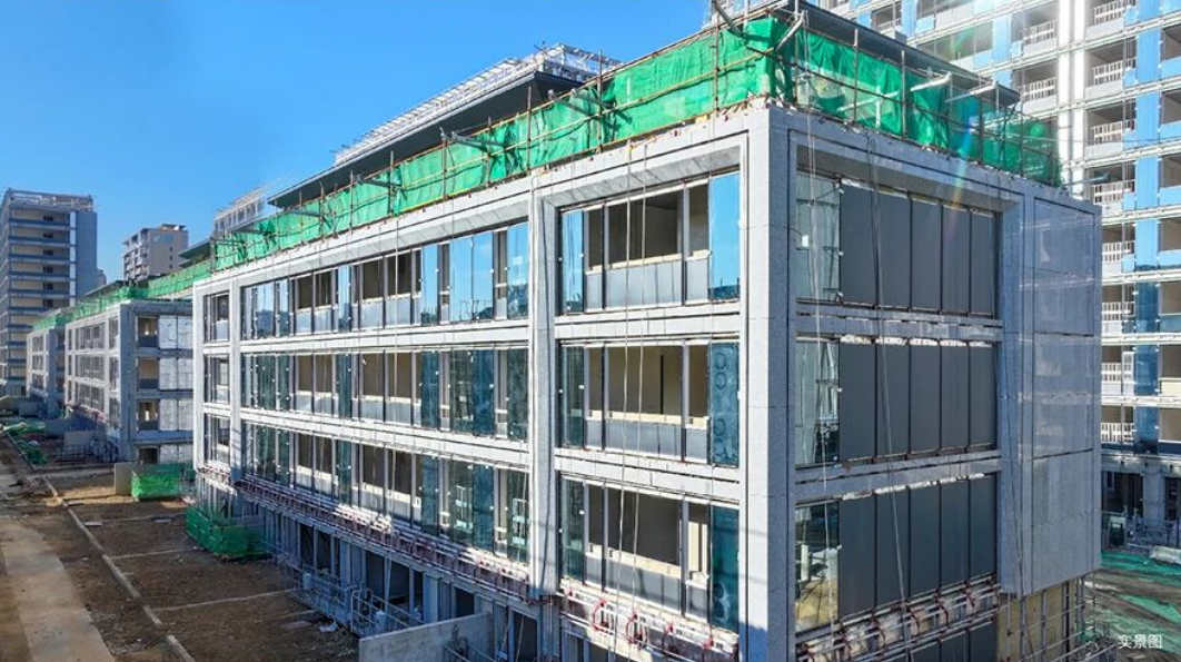 小高层区域外立面幕墙、石材安装进度较快,室内抹灰与给排水工程基本完成。