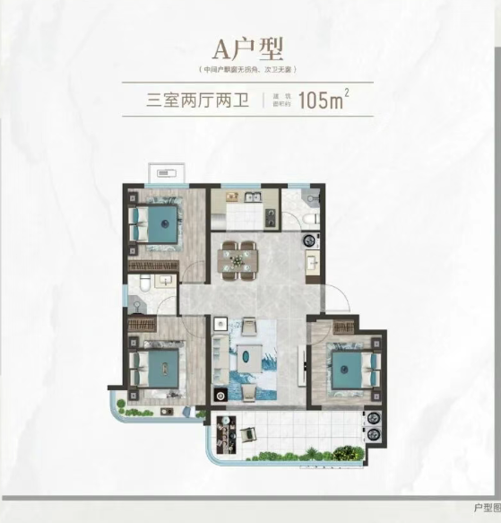 全年无遮挡采光、百平三居双卫舒适户型
