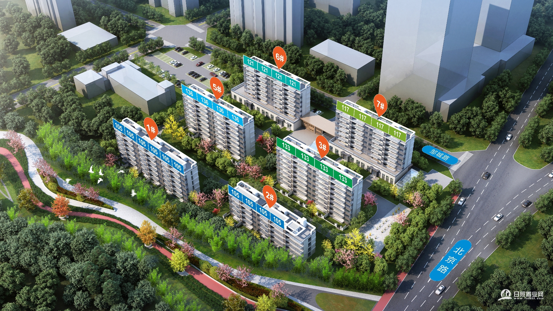 项目在北京路上,属于北京路-海曲路中轴,这个位置是日照比较成熟的核心区域了。看了一下,周边1公里生活圈里,有银座、万象汇这些商场,还有人民医院,日常购物、看病都算方便。同时,项目旁边就是1700米的竹海绿廊,能享受到一定的自然景观,算是兼顾了“出则繁华,入则静谧”。