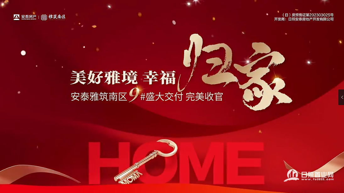 日照置业网01月12日讯:1月10日,安泰雅筑南区9号楼盛大交付!提前100天兑现家的承诺,收官之作圆满落幕,以匠心致初心,美好新生活即刻启航,均价12000元/㎡,(具体成交价以售楼部为准)。