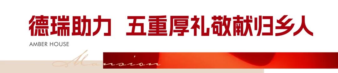 政策东风已至,德瑞·瑞熹苑亦诚意满满。今年归乡,一份名为“返乡五重礼”的专属厚遇,已为你备好: