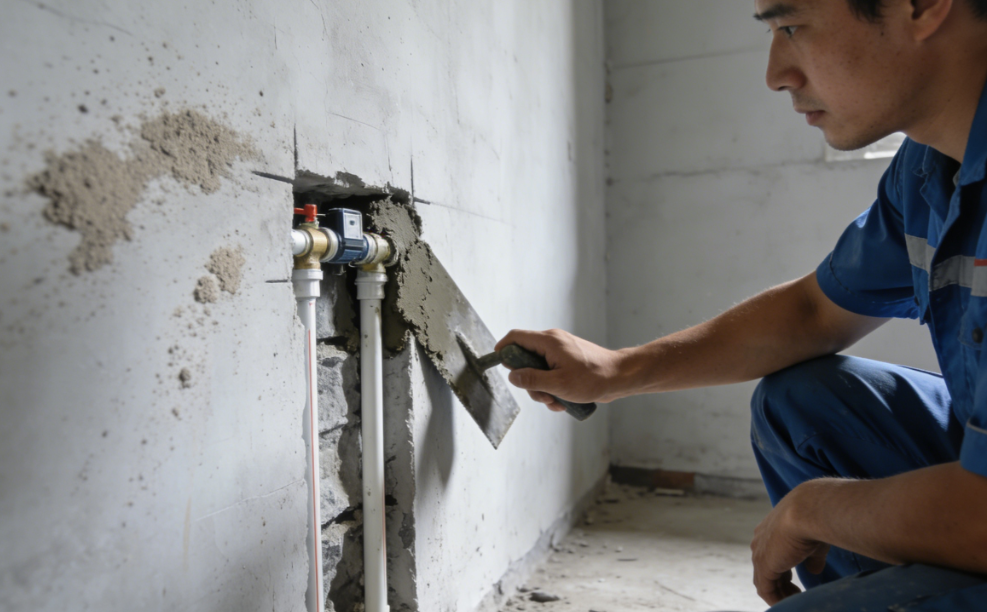 省钱套路:水管接完直接封槽,不做压力测试。后果:接口有砂眼发现不了,入住后慢慢渗水。