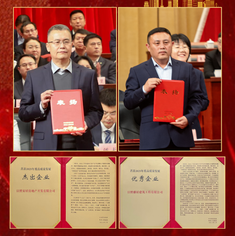 在颁奖环节,安居集团董事长柴松军、雅居建筑公司总经理闫海洋从县领导手中接过表扬证书,聚光灯下,表扬证书闪耀的不仅是企业的荣耀,更是莒县本土企业坚守实业、创新发展的时代缩影。