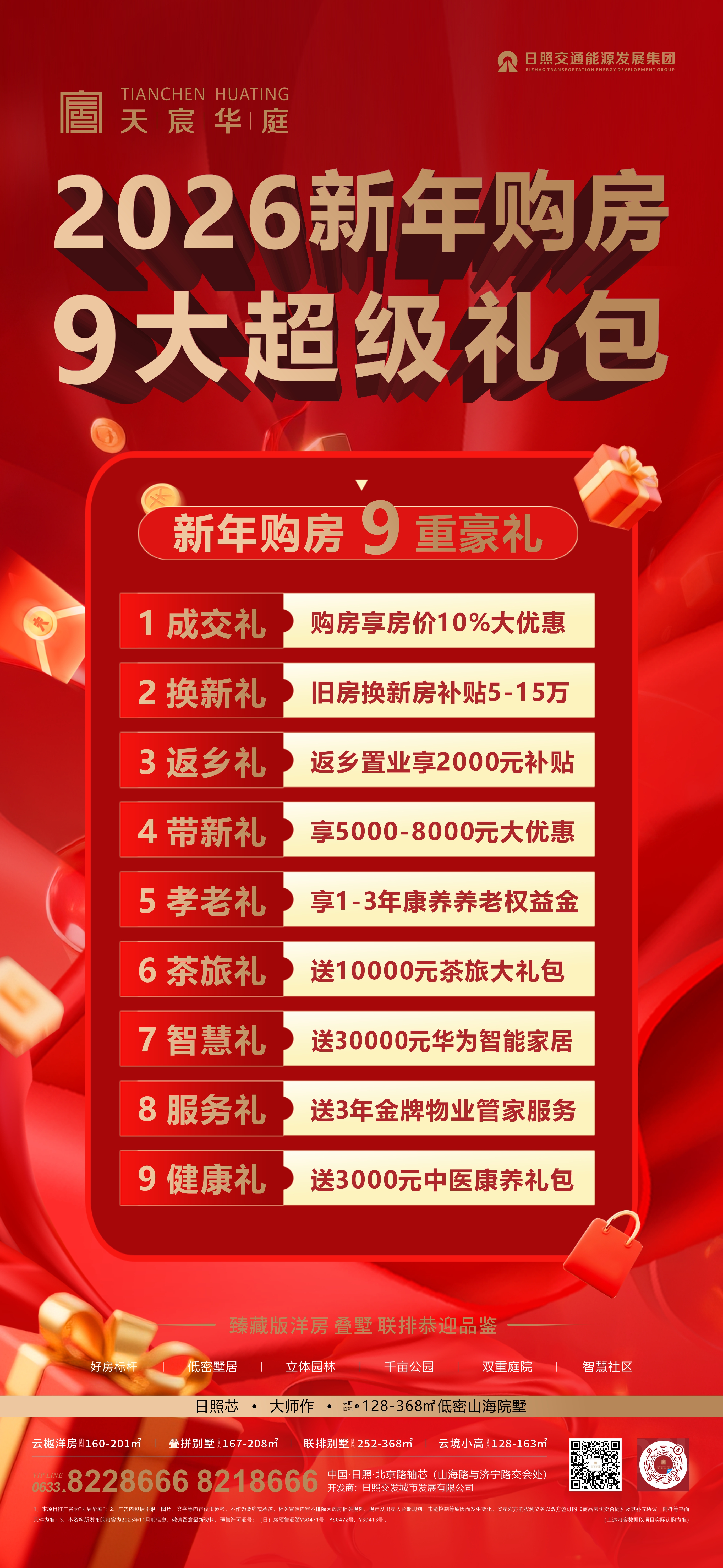 除了价格上的实惠,天宸华庭更为业主准备了丰厚的生活礼遇。项目联合知名品牌赠送价值30000元的华为智能家居套装,让科技赋能日常生活;同时提供三年物业管家服务,并配套10000元茶旅大礼包、3000元中医康养礼包以及1至3年不等的康养养老权益金,从居住品质到身心健康,全方位呵护业主生活。