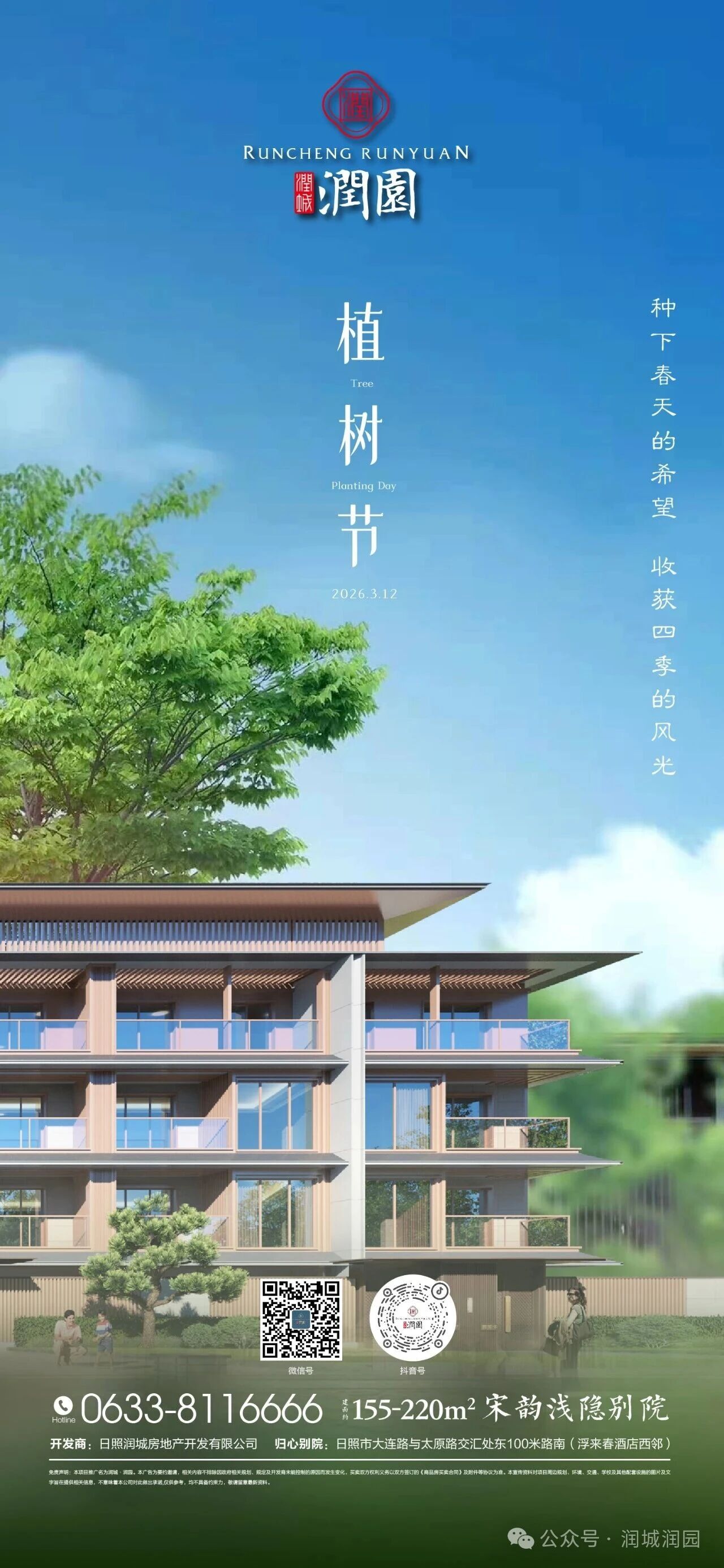 目前,155-220㎡宋韵浅隐别院准现呈现,开发商日照润城房地产开发有限公司以匠心深耕,让美好在土壤深处扎根。项目位于日照市大连路与太原路交汇处东100米路南(浮来春酒店西邻),春日植绿复工,既是生态匠心的延续,更是为居者提前兑现“四季有景、步步皆诗”的生活图景。