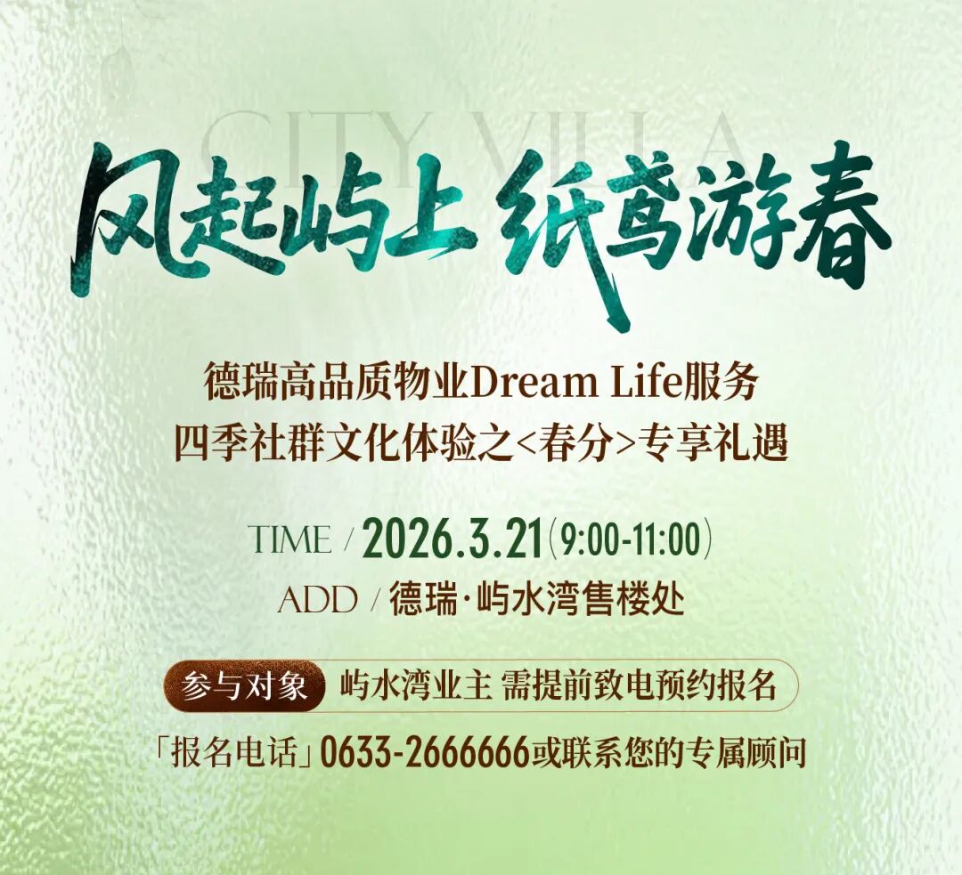 当春分的温婉,邂逅龙抬头的昂扬,德瑞高品质物业Dream Life以四季社群文化为媒,邀您至屿水湾共赴一场融雅趣、知识、童真于一体的春日之约。